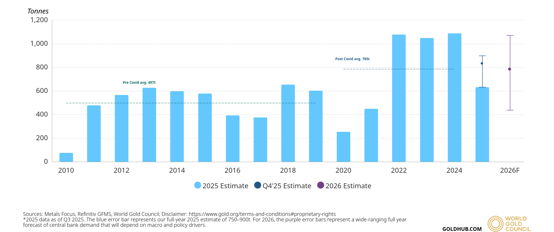 Central Banks & De-dollarization: Monitor the pace of official buying, which is projected to stay elevated at roughly 800 tonnes for 2026. The “threat of foreign asset freezing” is driving reserve managers to rotate hundreds of billions from U.S. assets into gold.