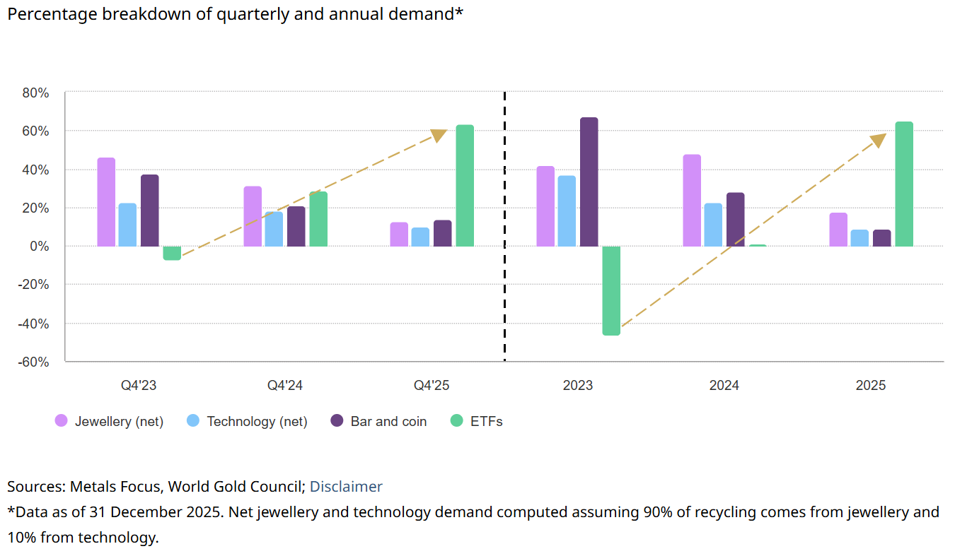 Retailers in price-sensitive regions like India and China have been forced to adapt to survive the “Gold Shock”. In India, consumers have shifted toward smaller ticket sizes and fixed-budget purchases to compensate for global spot prices testing 5,500 USD/oz. I could also dive into the technology demand, however that one is rather insignificant and by most accounts it does not fluctuate significantly enough to imapct gold prices.
