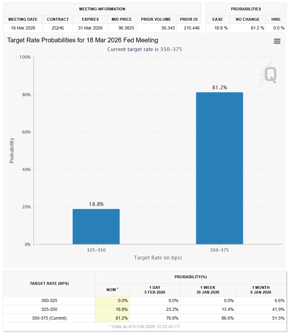Despite this volatility, interest rate probabilities did not meaningfully change this week. The market is still digesting the “Goldilocks” manufacturing data, which suggests the economy is too hot for aggressive immediate cuts. The Fed is currently paralyzed by the conflicting signals: robust GDP growth argues for “higher for longer,” while a deteriorating labor market screams for relief.