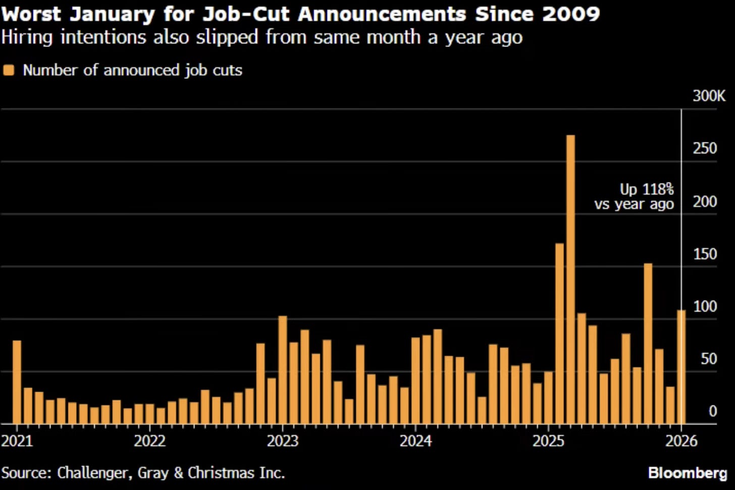 The Spike: Layoffs are up 118% year-over-year. This isn’t a gradual cooling; it is a sudden freeze.